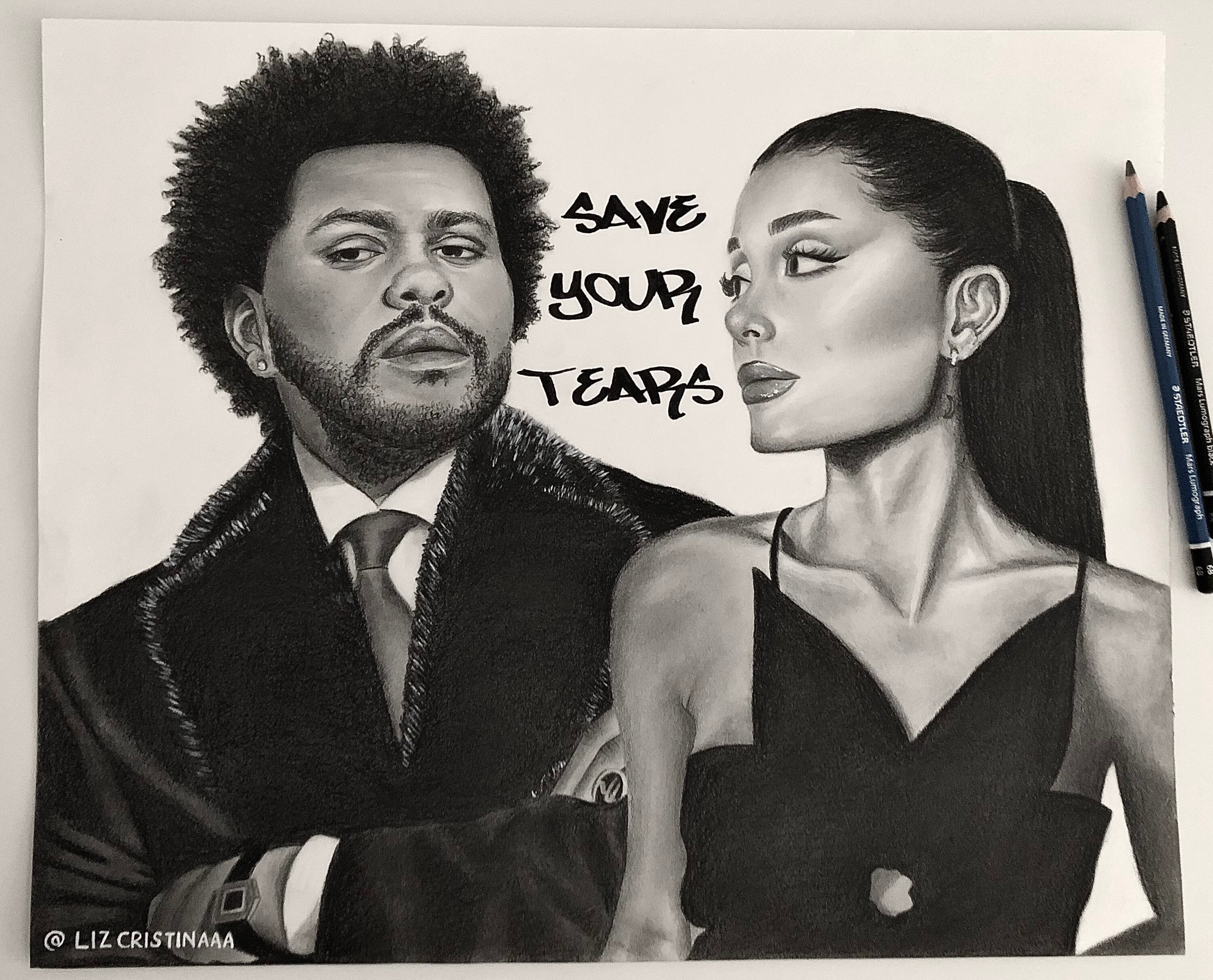 14 X 17 In. The Weeknd & Ariana Grande Pencil Drawing Wall Art - Etsy